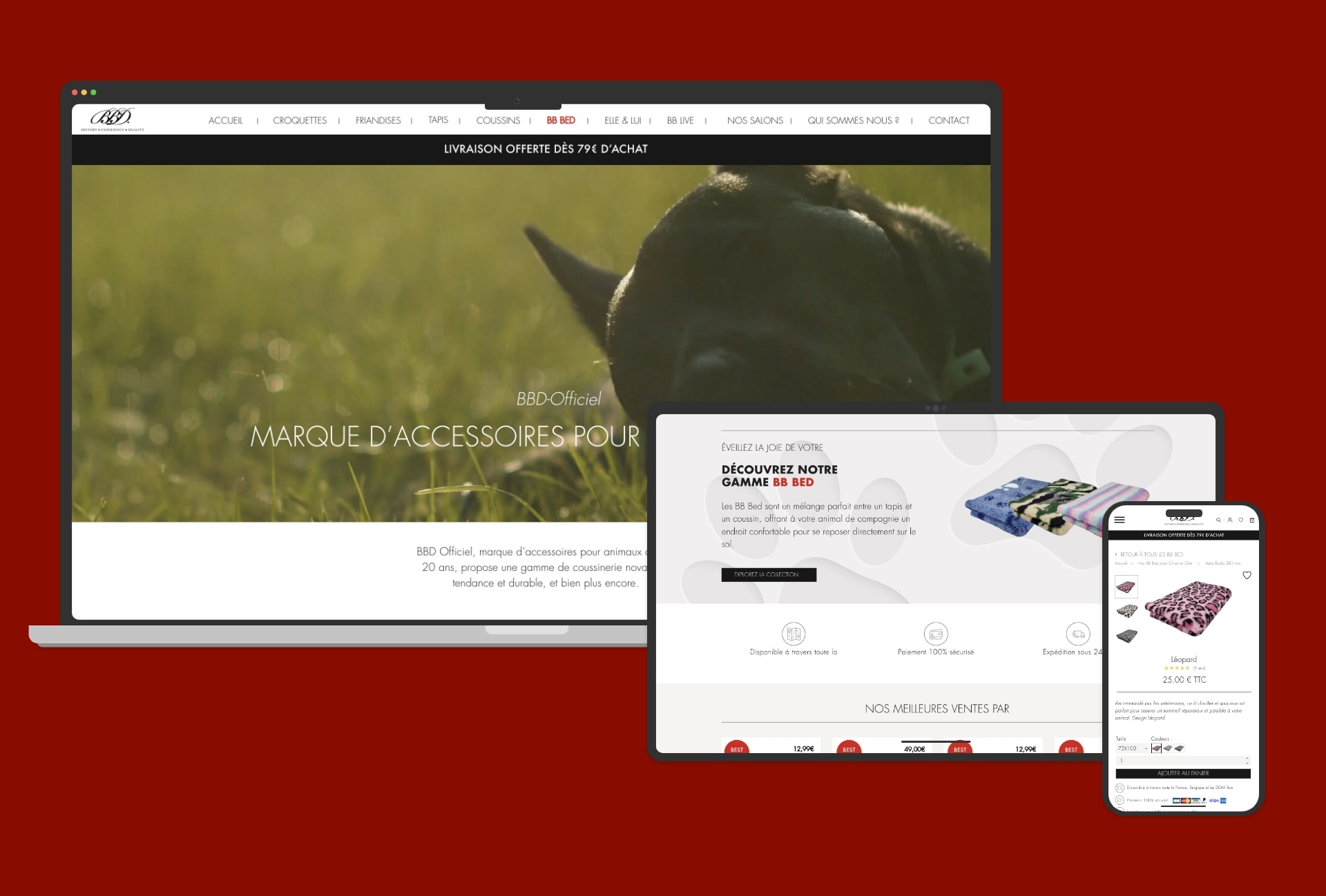 BBD Officiel est une marque spécialisée dans les accessoires pour chiens et chats. Pour la refonte complète de leur site e-commerce notre objectif était de moderniser leur plateforme en mettant un accent particulier sur l'expérience utilisateur (UX).